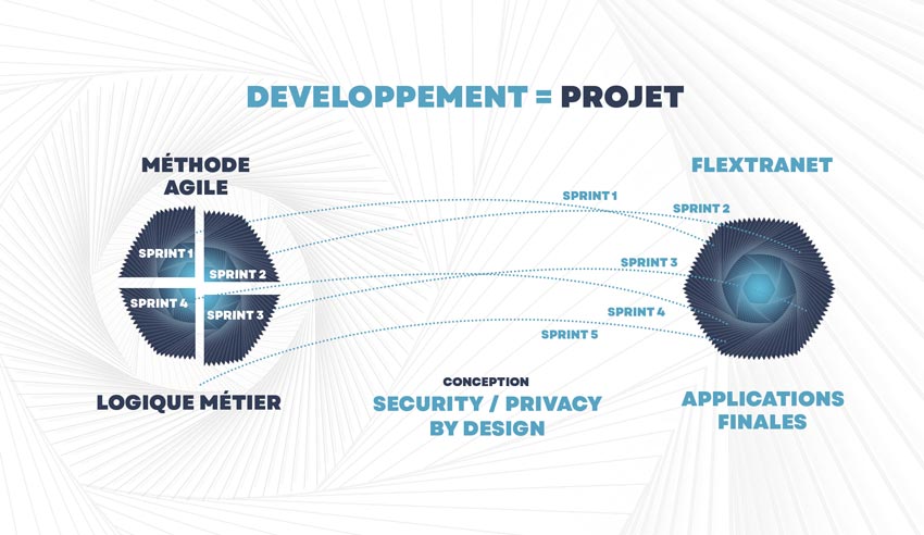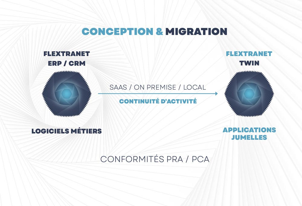 Avec FLEXTRANET l’objectif est simple, vous garantir la rapidité du développement de vos applications, un accompagnement Agile et maîtrisé de votre migration et le déploiement d’applications jumelles pour assurer la continuité de votre métier.